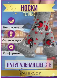 Теплые вязанные шерстяные носки снегирь сердечки