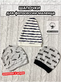 Шапочка чепчик для новорожденного младенца комлект 3 штуки