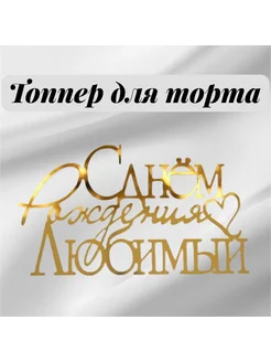 Боковой топпер для торта «С Днем Рождения, Любимый», золото