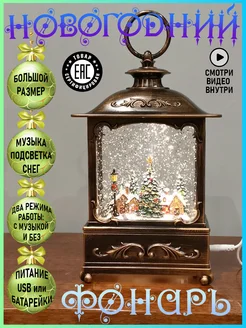 Новогодний подарок музыкальный фонарь со снегом автометелью