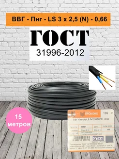 Кабель ВВГ-Пнг(А)-LS 3х2,5 Гост, 15 метров