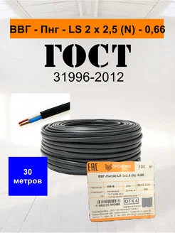 Кабель ВВГ-Пнг(А)-LS 2х2,5 Гост, 30 метров