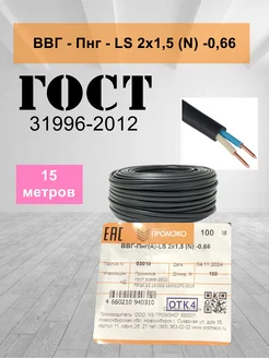 Кабель силовой ВВГ-Пнг (А)- LS 2х1,5 ГОСТ, 15 м