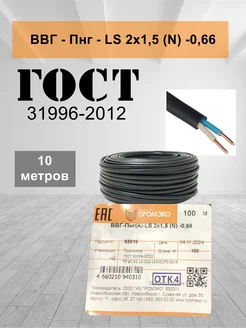 Кабель силовой ВВГ-Пнг (А)- LS 2х1,5 ГОСТ, 10 м