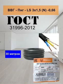 Кабель силовой ВВГ-Пнг (А)- LS 3х1,5 ГОСТ, 30 м