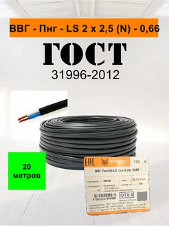 Кабель ВВГ-Пнг(А)-LS 2х2,5 Гост, 20 метров