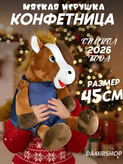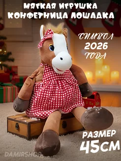 Мягкая игрушка конфетница символ 2026года новогодняя лошадь