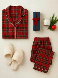 Новогодняя пижама со штанами и рубашкой хлопок