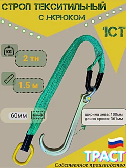 Строп текстильный для эвакуатора с J-крюком 1СТ 2тн 1,5м