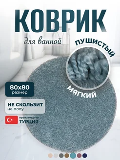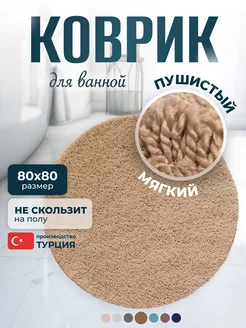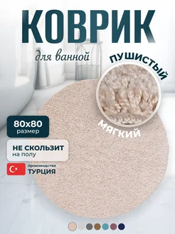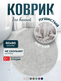Круглый коврик для ванной и туалета 80*80 пушистый мягкий