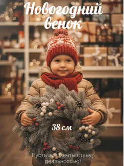 Венок новогодний 38 см на дверь и стол
