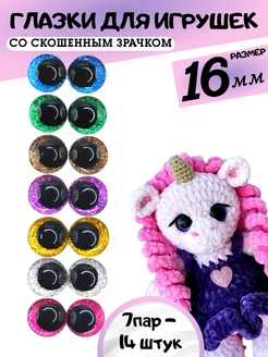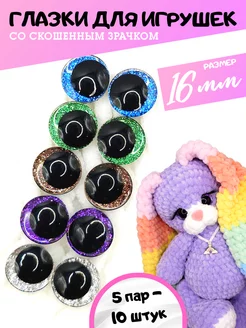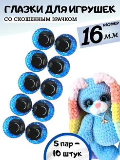 Глазки для игрушек со скошенным зрачком 16 мм голубые