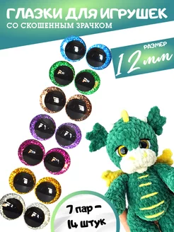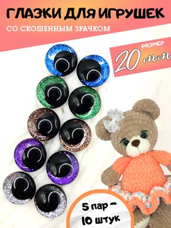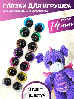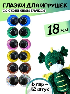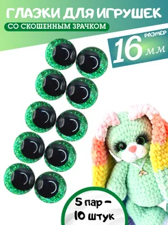 Глазки для игрушек со скошенным зрачком 16 мм зеленые