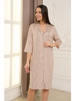 Халат из вискозы на пуговицах в полоску для дома