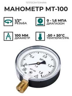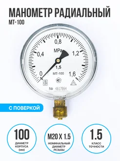 Манометр радиальный МТ-100 1,6 МПа (резьба - М20х1.5)
