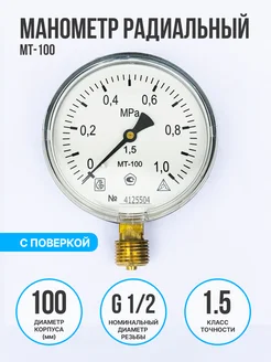 Манометр радиальный МТ-100 1,0 МПа (трубная резьба - 1 2)