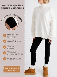 Костюм двойка свитер оверсайз лосины теплые в рубчик