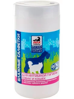 Влажные салфетки для собак и кошек интимная гигиена 40 шт