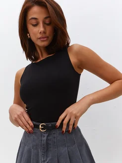 Топ удлиненный майка лодочка под пиджак хлопок без рукавов