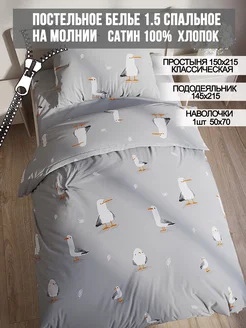 Постельное белье 1.5 спальное хлопок сатин Seagull