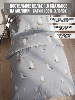 Постельное белье 1.5 сп. на резинке хлопок сатин Seagull
