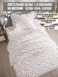 Постельное белье 1.5-сп сатин хлопок Розы на резинке