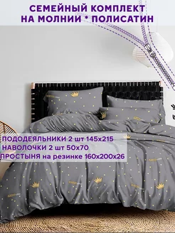Постельное белье 1.5 спальное на резинке полисатин Crowns