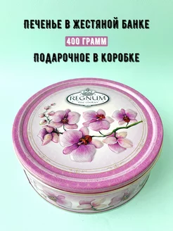 Печенье подарочное в жестяной банке Орхидеи 400г