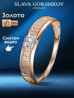 Обручальное золотое кольцо 585 пробы "Спаси и Сохрани"