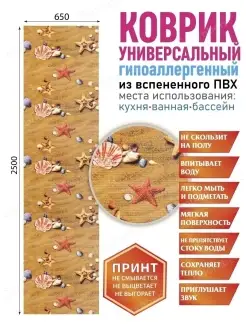 Коврик для ванной противоскользящий быстросохнущий 65х250