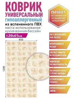 Коврик для ванной противоскользящий быстросохнущий 65х120