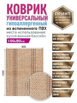 Коврик для ванной противоскользящий быстросохнущий 80х100