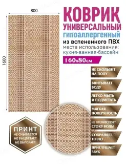 Коврик для ванной противоскользящий быстросохнущий 80х160