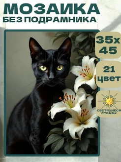 Алмазная мозаика без подрамника 30 х 40 светящаяся кот лилии