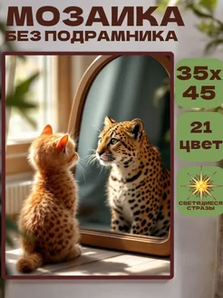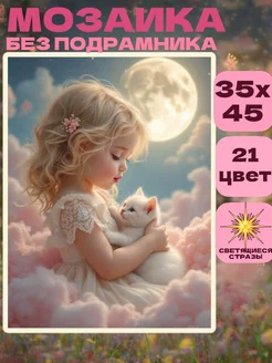 Алмазная мозаика без подрамника 30 х 40 светящаяся котенок