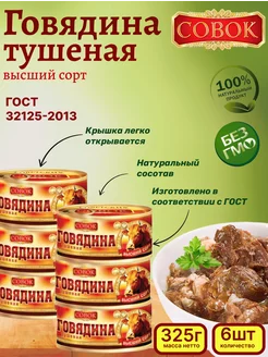 Говядина тушеная, высший сорт, 6шт. по 325 г