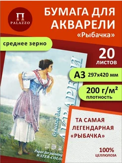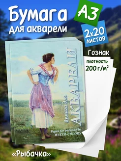 Бумага для акварели Рыбачка А2 200 г м2 Гознак 20 листов