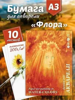 Бумага для акварели А3 200 г м2, ГОЗНАК 10 листов "Флора"