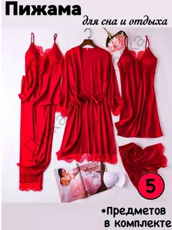 Пижама женская со штанами шелковая с халатом 5 в 1