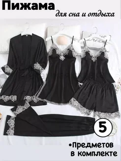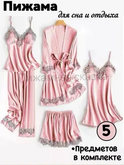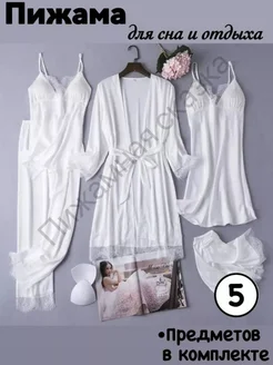 Пижама женская с брюками шелковая 5 предметов