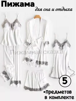 Пеньюар женский шелковый с халатом 5 предметов