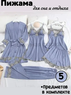 Пижама женская со штанами и шортами комплект 5 в 1 пеньюар