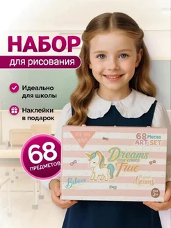 Пенал школьный 3D с канцелярией 25 предметов - фрукты