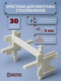 Крестики для монтажа стеклоблоков под шов 5мм, 30 шт, белые
