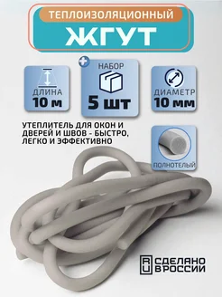 Уплотнитель, жгут теплоизоляционный 10 мм, 10 м. Набор 5 шт