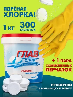Хлорка в таблетках дезинфицирующее средство и перчатки