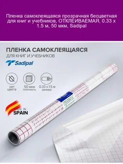Самоклеящаяся прозрачная плёнка для книг, 0.33×1.5 м, Sadipa
