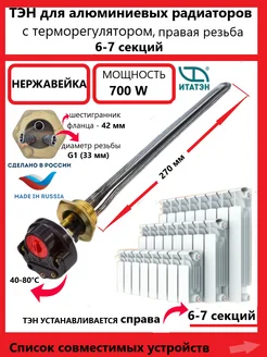 ТЭН 700W для алюминиевых радиаторов с термостатом, правая р