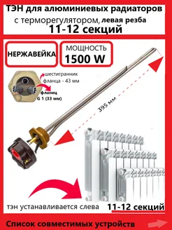 ТЭН 1500W для алюминиевых радиаторов с термостатом, левая р