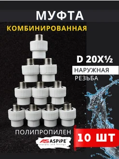 Муфта полипропиленовая 20х3 4 наружная резьба, комбинированн